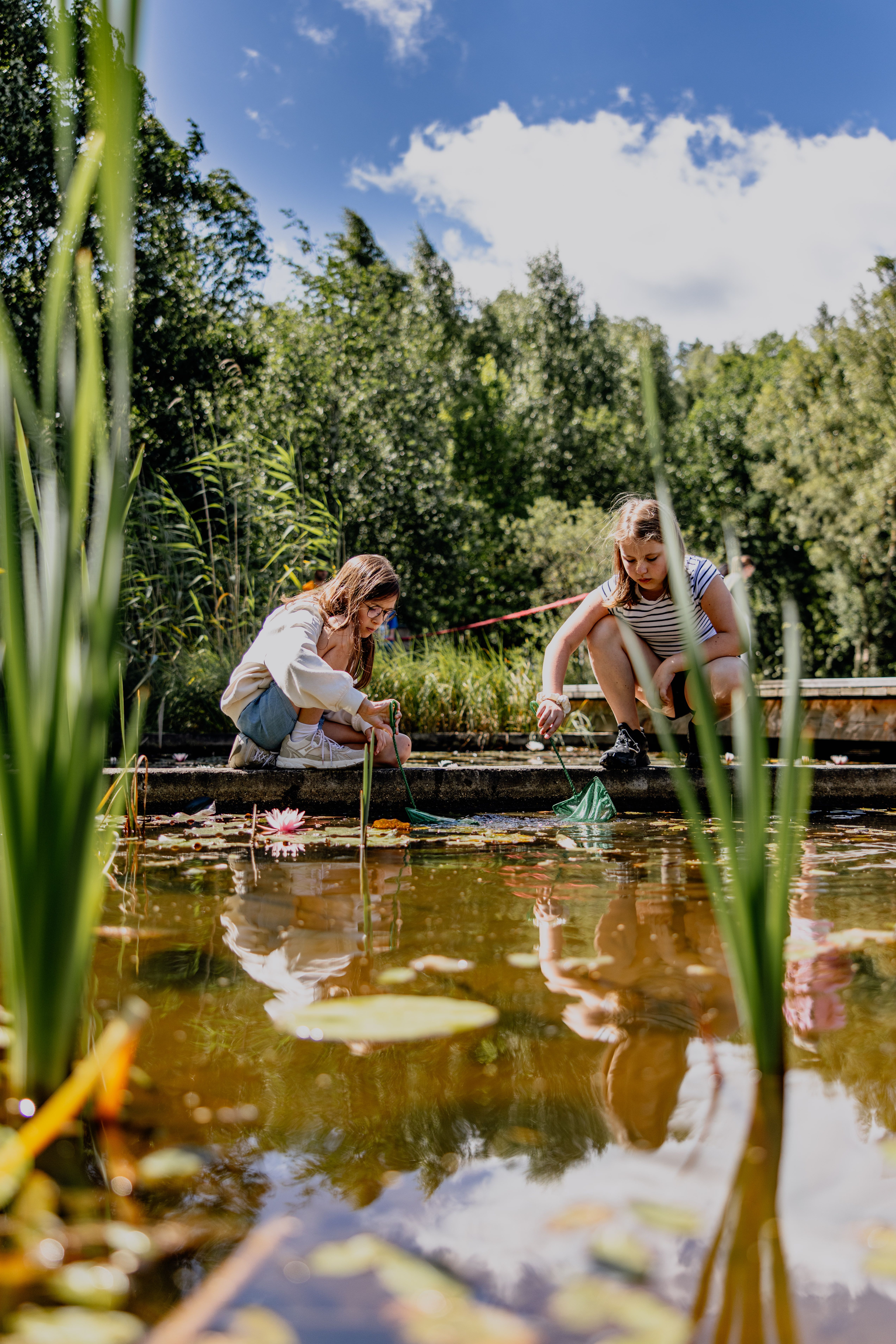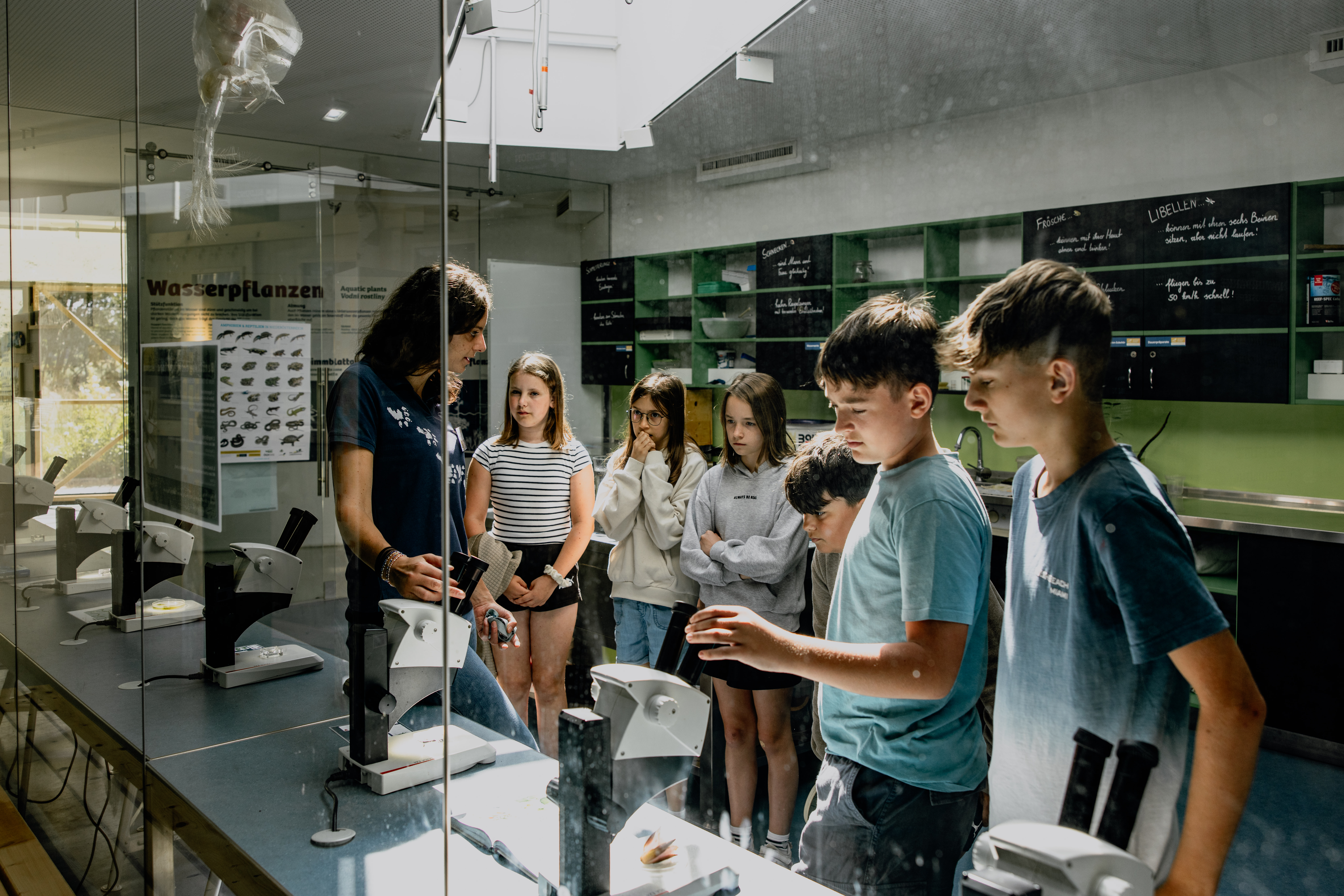 Altersgerechte, interaktive Führung durch die Ausstellung und den Wassergarten im Naturparkzentrum UnterWasserReich, Keschern in einem Tümpel im Naturpark. Dauer 3,5 Stunden