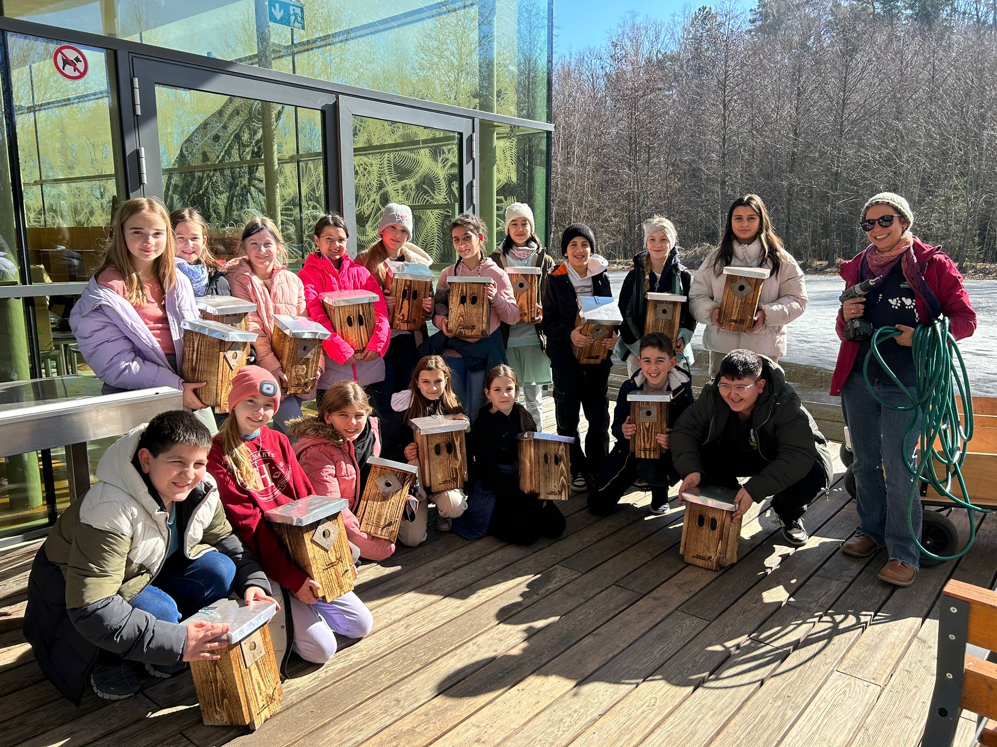 Rechtzeitig vor der Brutsaison hat der Naturpark Hochmoor Schrems gemeinsam mit der 1. Schulstufe der Naturparkschule - NMS Schrems den Vögeln unter die Arme, oder besser gesagt unter die Flügel, gegriffen. Im Rahmen des Projekts „Schutz der Vögel“ hat der Naturpark Hochmoor Schrems 19 neue Vogelnistkästen im Naturparknahbereich fachgerecht und baumschonend montiert. Die Schüler:innen hatten sichtlich Spaß bei der Aktion und planen die Nistkästen nochmals zu besuchen um zu sehen, ob Vogelpärchen ein neues Zuhause gefunden haben. Das UnterWasserReich hat neben der Montage auch die weitere Betreuung der Nistkästen übernommen.