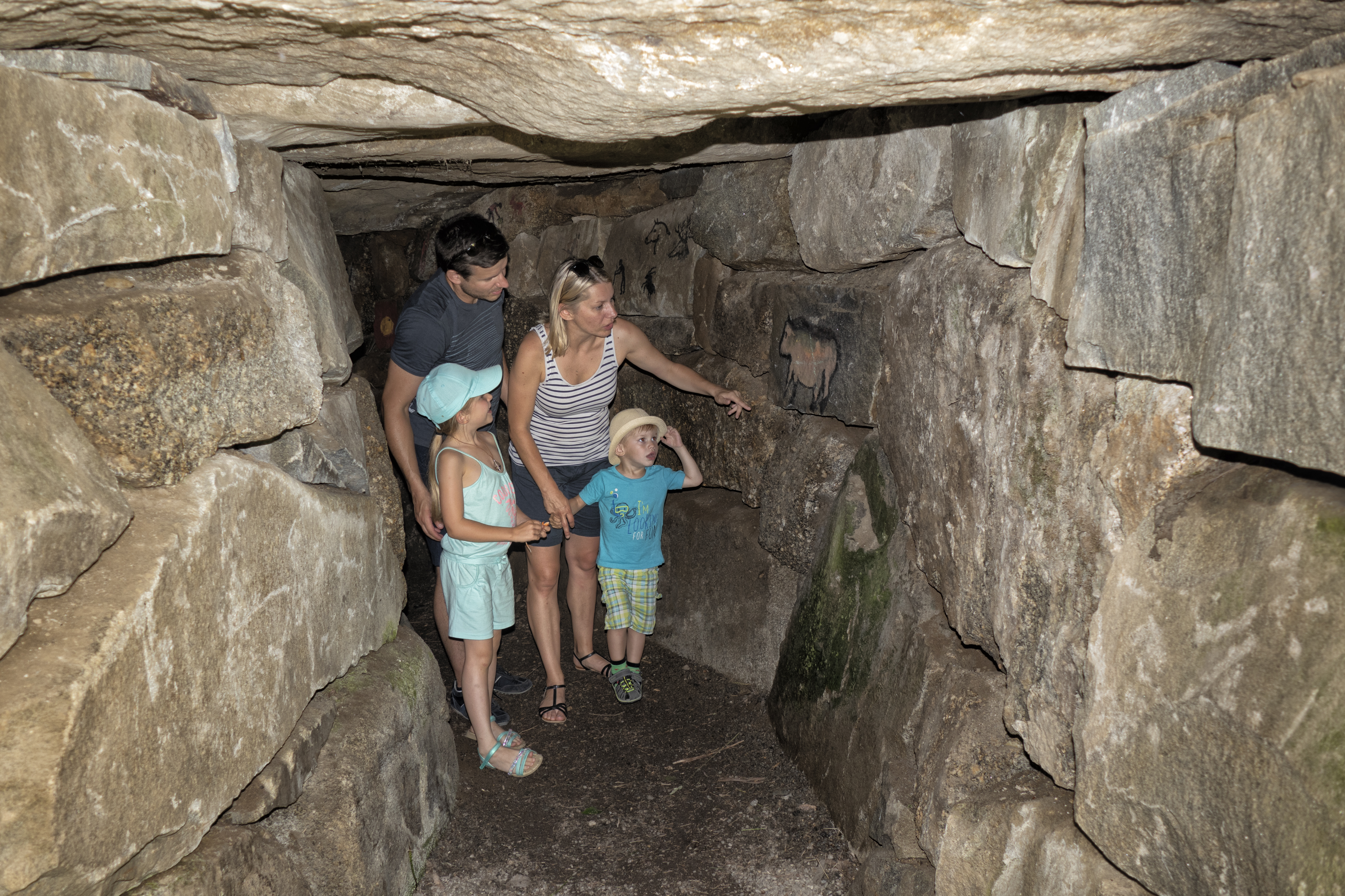 Die Steinhöhle am Weg zur Himmelsleiter ist das erste Projekt des Schremser Naturparkvereins-Obmannes Martin Speychal. Passend zur Region ist sie aus massivem Schremser Granit gebaut und innen mit Steinzeitbildern bemalt worden. Durch die Höhle führt ein niedriger, s-förmiger Gang.