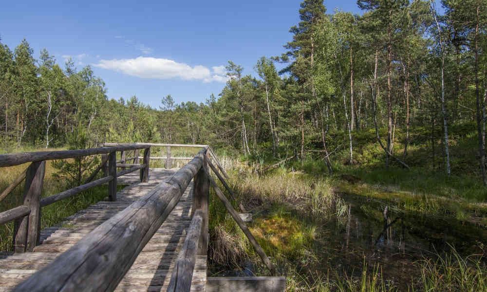 Rundwanderweg in Schrems - W4 Auf Wanderungen im Naturpark Hochmoor Schrems kann man so richtig abschalten und Natur pur genießen. Neben zahlreichen Tümpeln und Teichen ist die Flora und Fauna der Moorlandschaft besonders eindrucksvoll. Abkühlung verspricht das direkt angrenzende Moorbad Schrems (Eintritt frei), kulinarische Erlebnisse versprechen die zahlreichen Gasthäuser in Schrems.
